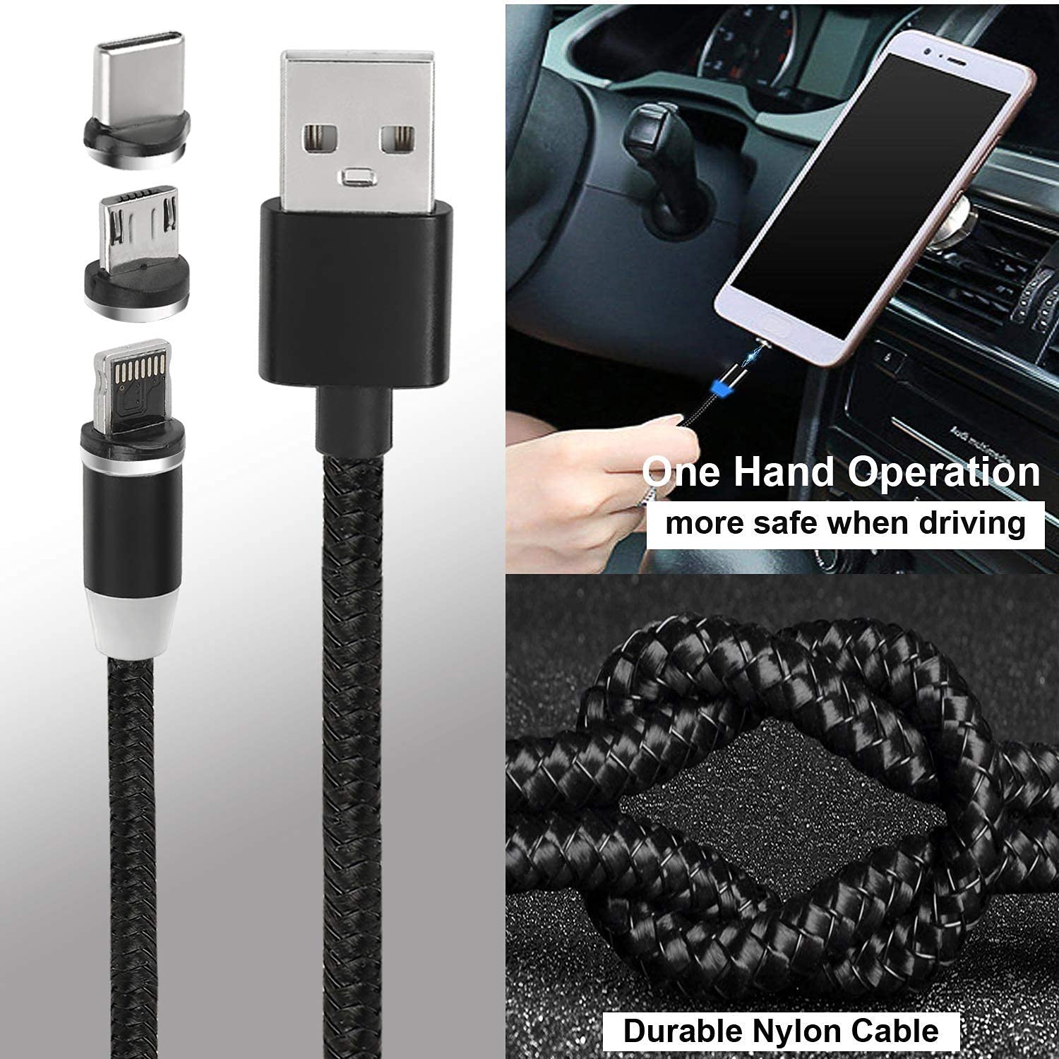 3 in 1 Nylon Braided Fast Charging Wire Cord Magnetic Charger USB Cable