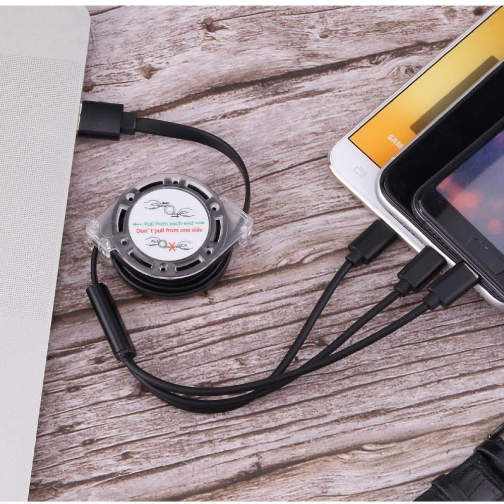 3 in 1 USB Cable Fast Charging Data Cable design which charges most of the mobile phones (Phone type-c micro-usb interface)available on market. Charge any of your devices with the 3-in-1 retractable charging cable, built-in Micro USB, USB-C, and iOS connectors.