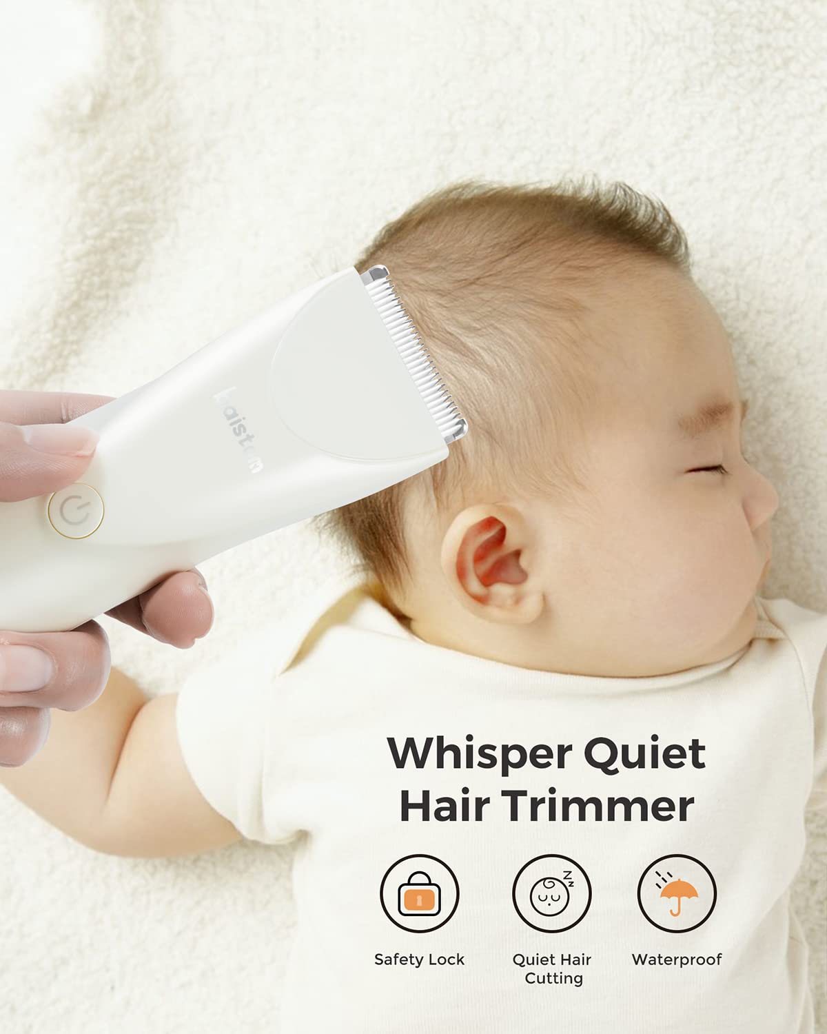 This baby clipper adopts ceramic blade with 28 R-shaped teeth to cut kids’ hair without pulling hair or scratching skin. Professional infant hair trimmer with its ultra-silent motor, quiet for baby specially.