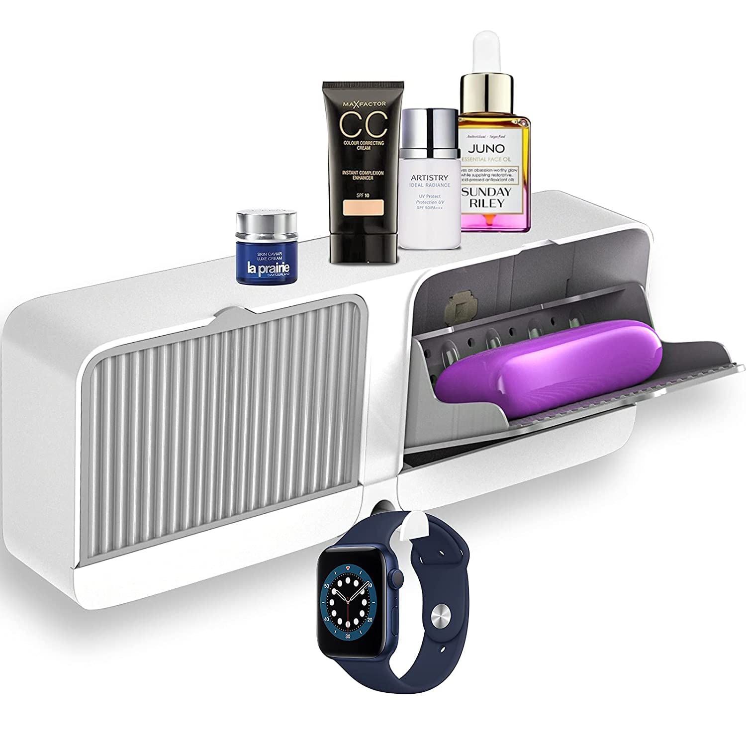 The bathroom soap dish is wall-mounted as a whole and does not take up space. The unique groove design on the top can place mobile phones, rings and other personal items to avoid getting wet; The double hook design can hang small objects such as towels, bath balls, head ropes, silk scarves, combs, etc. Convenient and practical.