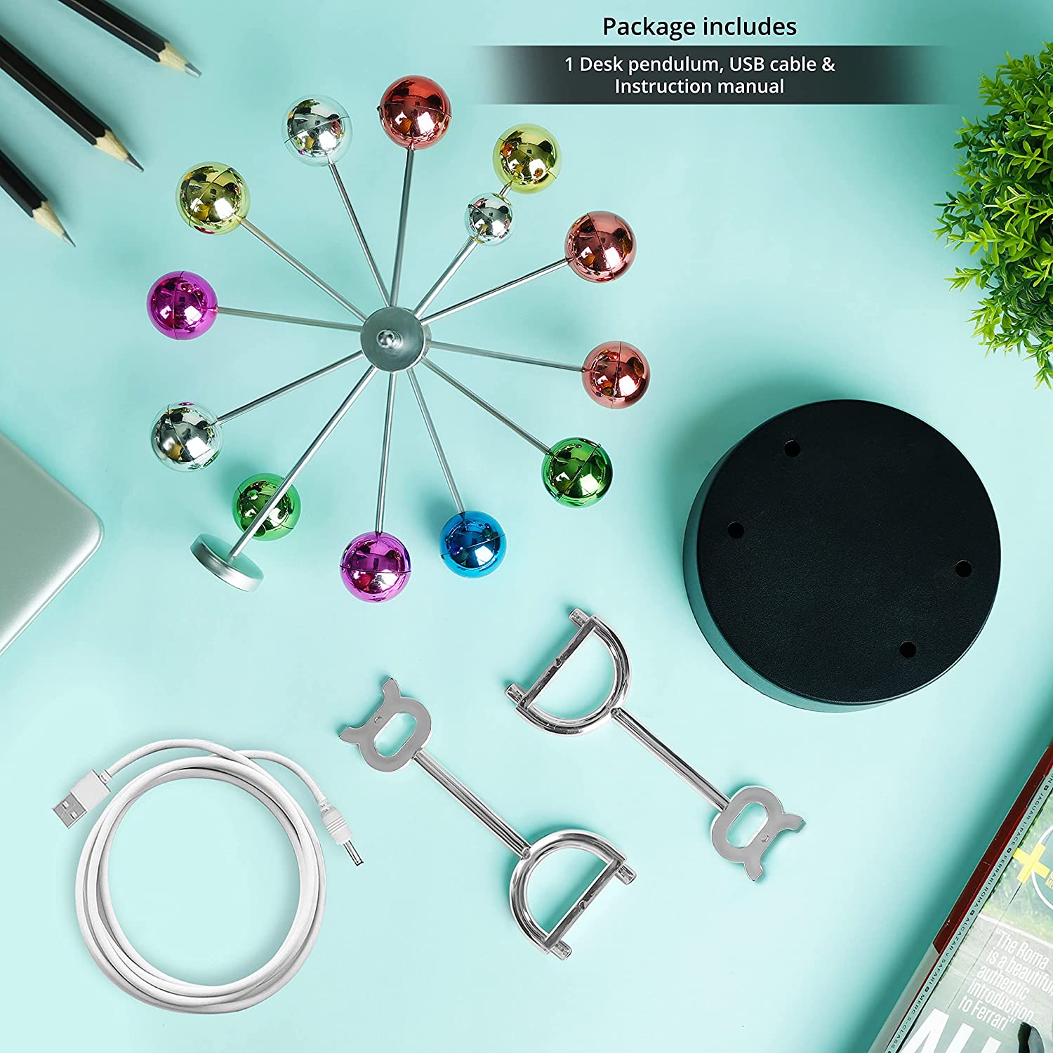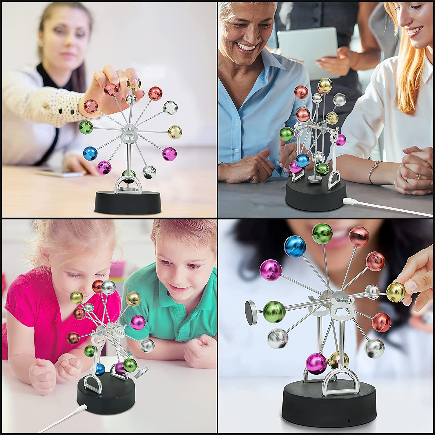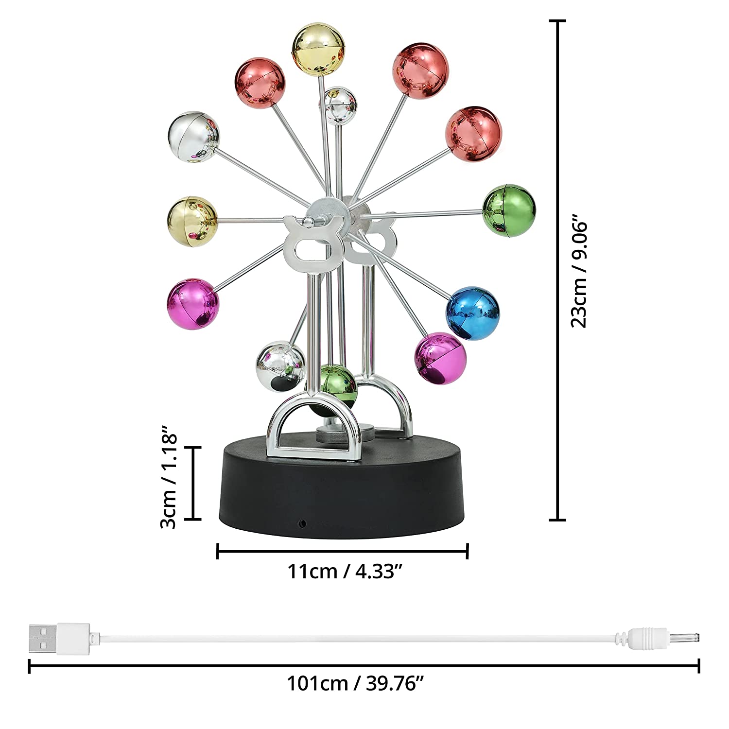 Electronic Perpetual Motion Balance Balls Kinetic Orbital Craft Newton Celestial Pendulum Physics Science Desk Toy Office Home Decor Ornament is made of high-quality plastic that’s’ strong and durable. The multiple balls are colorful which looks like wheels of hues when in motion. It’s an excellent educational and science device to stimulate interest in physics. The kinetic pendulum is also the best teaching tool, fun activity for children, and perfect desk showpieces. It’s easy to assemble with step-by-step manual provided by us for your perusal.