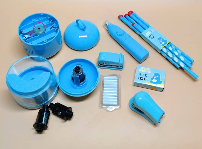 Fully Electric Stationary Set is a premium quality product. Lovely and cute Design. This package include electric stationary set pencil + eraser + sharpener + vacuum cleaner + Stapler + Hole Punch for kids.