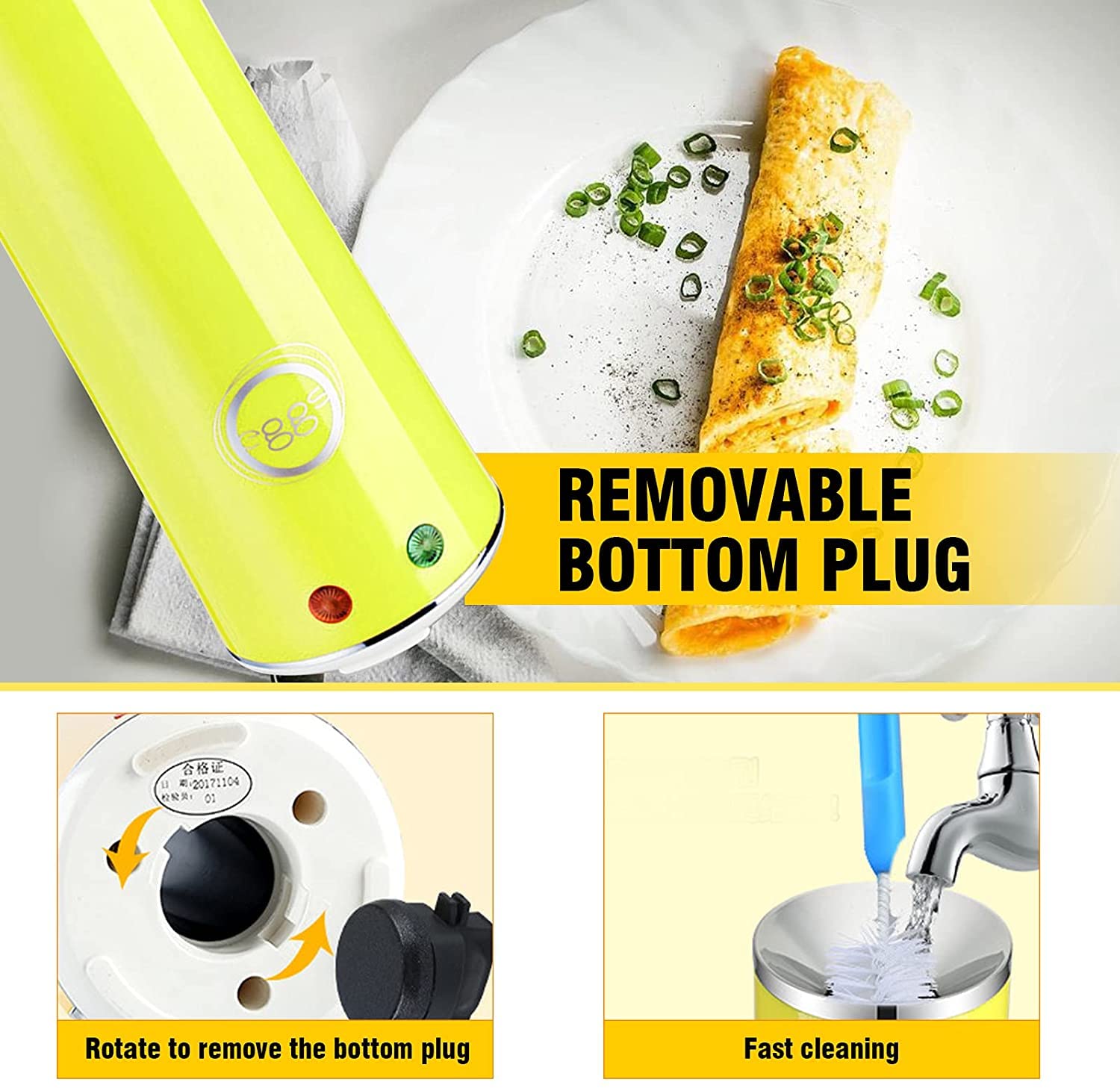 Multifunction Egg Roll Maker is like a magic. Adopted the newest technology in electric egg cooking, revolutionary cooking system lets you enjoy egg treats like never before, power is executed by the ETL standard certification, product safer and durable. After adding two teaspoons of oil for two minutes, you can put two eggs in each tube. Of course, you can also put an egg and mix it with the appropriate amount of cheese, ham, or even vegetable granules. The total volume of each tube should not exceed The volume of two eggs,Otherwise it is easy to overflow in advance. The product uses 304 stainless steel,is durable and heat-resistant, funnel shaped mouth prevent raw material from spilling over,Black crystal non-stick coating makes the cooking more fuel-efficient and more evenly heated.