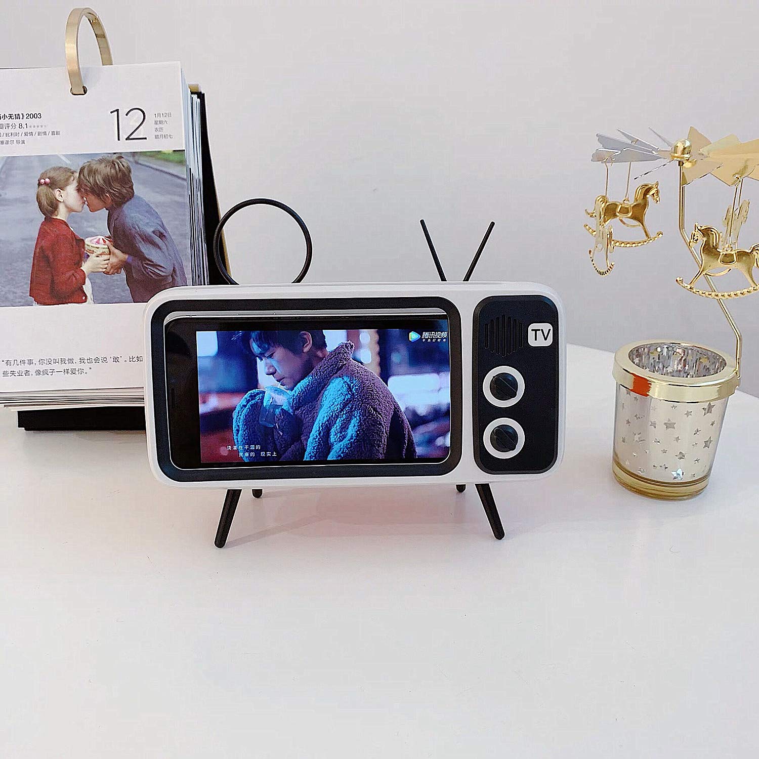 A Phone Screen Bracket is a versatile accessory designed to securely hold your mobile phone while providing an enhanced viewing and audio experience. It features a TV-style design with a built-in speaker, allowing you to enjoy videos, movies, and video calls with improved sound quality and convenience. The Phone Screen Bracket is adjustable, making it compatible with various phone sizes and offering flexible viewing angles.