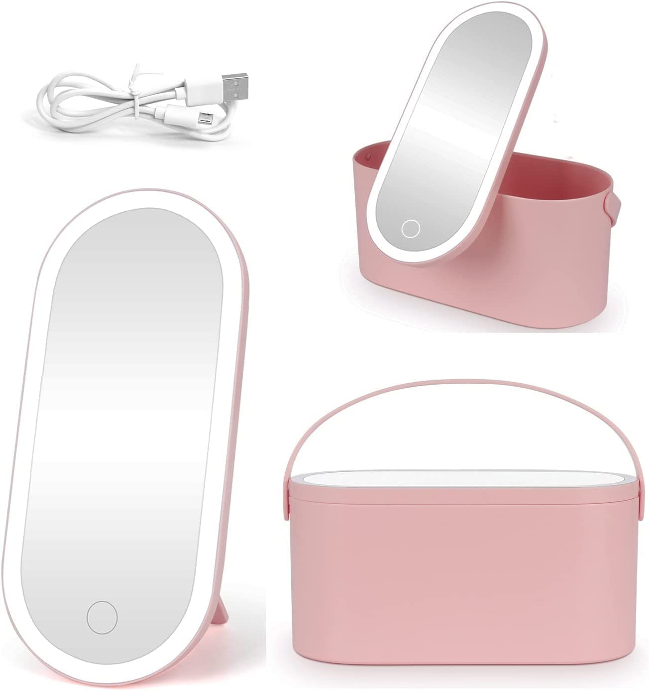 Portable Cosmetic Organizer with Mirror and LED Light