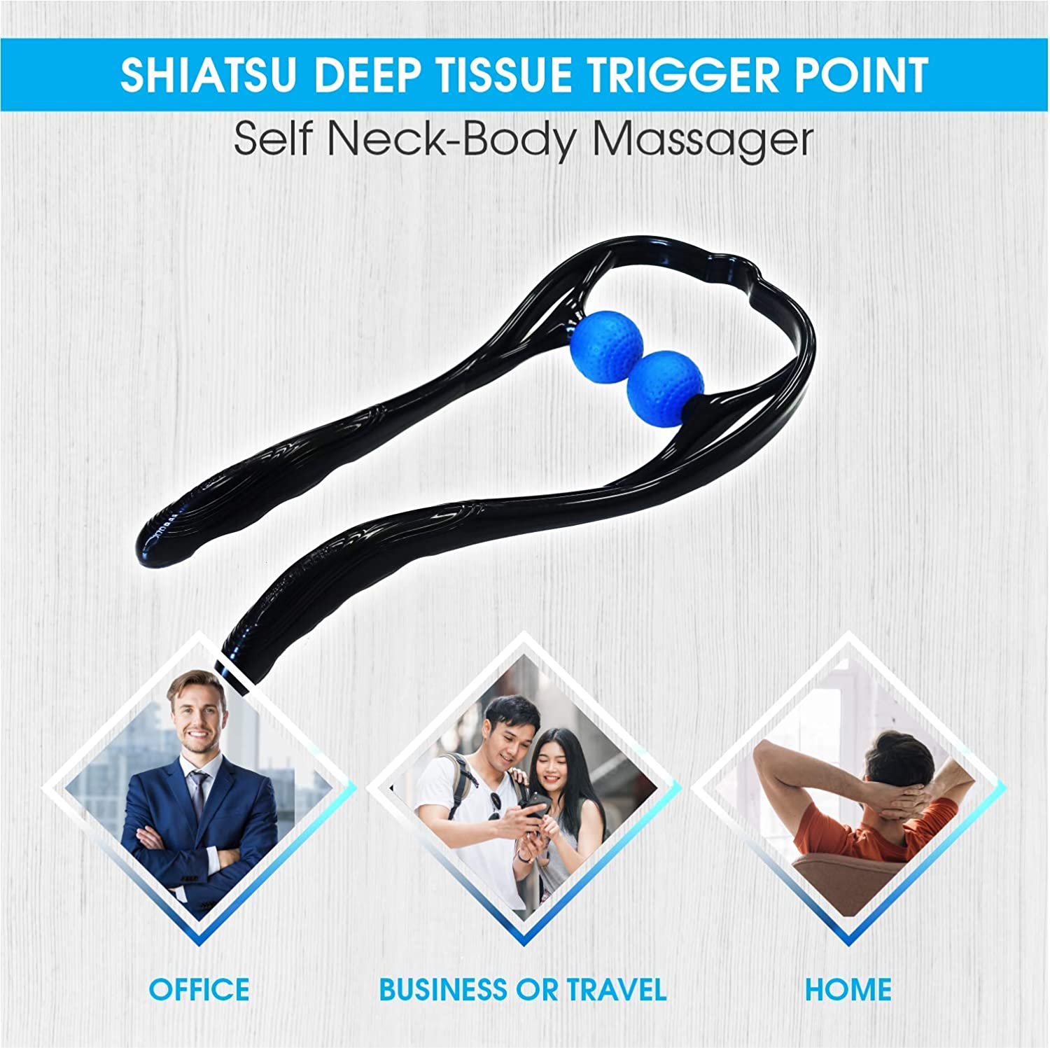 When a professional masseuse wants to relax and relieve you from pain and stiffness, he/she applies direct pressure and massages your trigger points. This handheld neck massager to replicate the same method and give you a similar shiatsu deep tissue massage of your trigger points. It’s like having a therapeutic masseuse in your hands.