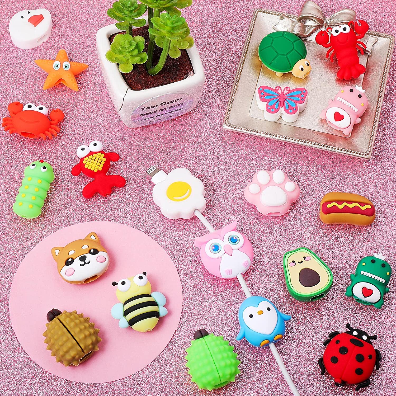 It is compatible with iPhone charging cable and most of other cables. The Cable protector is made of high quality silicon which is soft, lovely and durable. Designed in fruits,food miniatures,insect shape and festive collections,its adorable look could be good decoration for your cable. With these charging cable savers, you can share with your family members and send to your friends, relatives, colleagues and so on at festivals, and these cute cable savers will add more atmosphere and bring more fun on holiday.