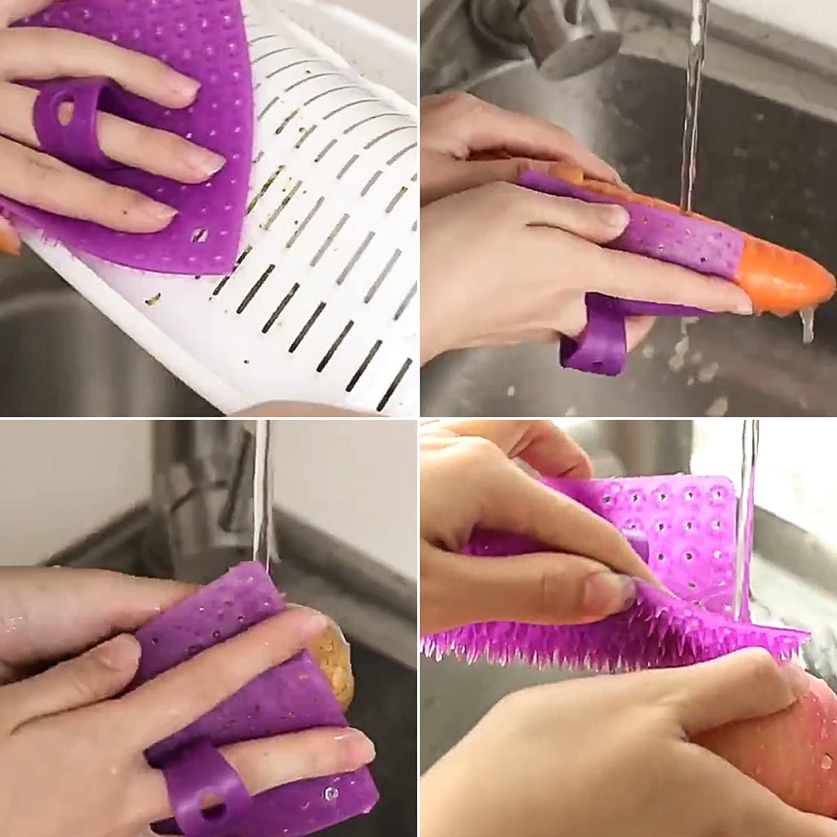 Silicone Fruit and Vegetable Cleaning Brush is a good helper in kitchen cleaning, multi-function to clean kitchen sink, pot,stove,basket, wall or floor gap. Vegetable brush scrubber for potatoes, carrots, corn, was made of sturdy silicone, their handle ring and brush bristles is very strong and will not falling off for long time using. The finger holder on the Vegetable Scrub Brush keeps the Finger stationary, It doesn’t have to bend your fingers to hold the Vegetable brush. Our Vegetable Scrubber Brush is a good tool for people with finger arthritis. This fruit and vegetable scrubber is available for potatoes, sweet potatoes, carrots, corn and more, fast cleaning and finished your kitchen job simpler and easier.