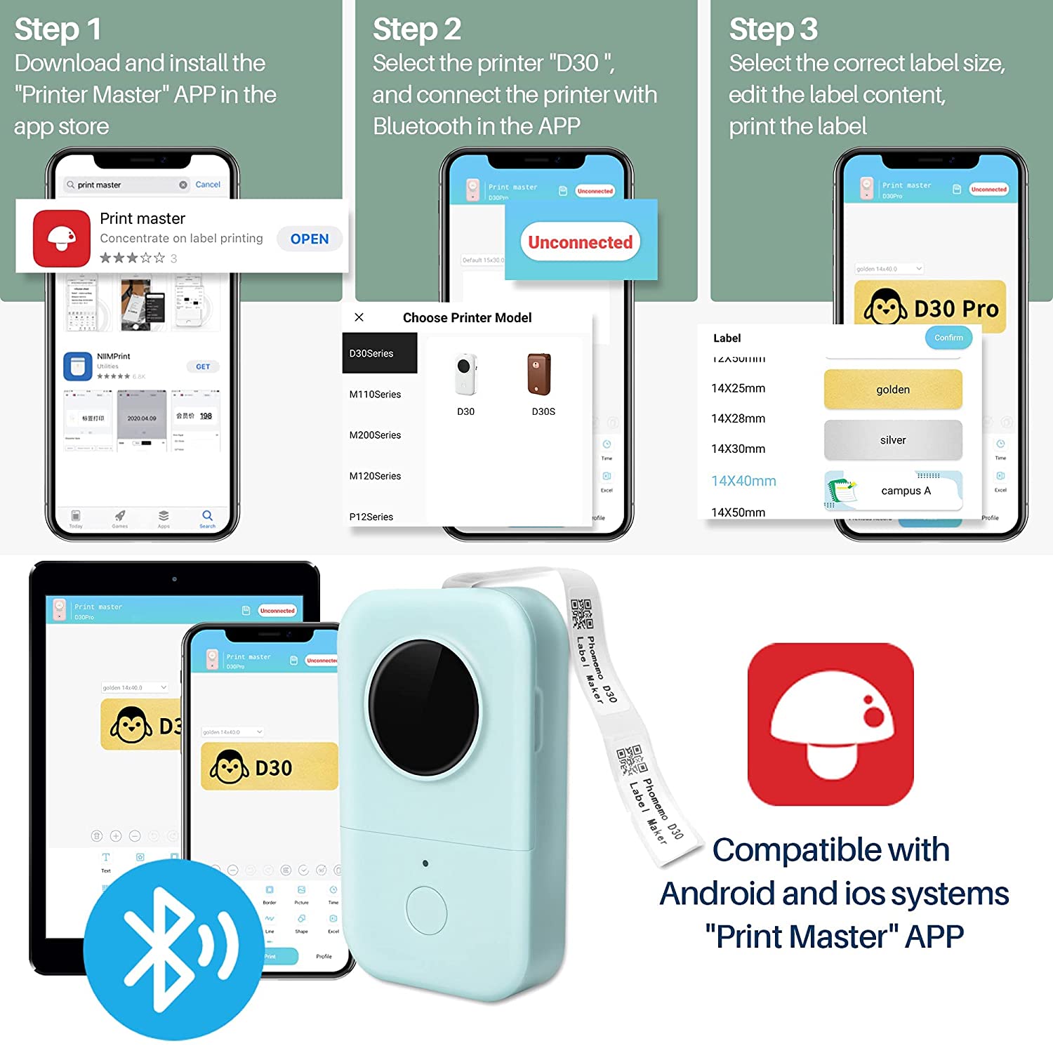Small Bluetooth Mini Label Printer is lighter and smaller than traditional label Makers. DPI increased by 25%. can print 52 rolls of paper continuously after being fully charged. Inkfree Mini printer of label and sticker. In office, you can print your instant idea or scheduled immediately, record those important things or classify items with different labels or stickers, so as to improving the working efficiency. In home, you can use it to classify various item, food container,etc. You can use this sticker printer-in kitchen, pantry, garage, home and office organization.Compact and lightweight for portability, making it easy to label just about anything, anywhere.