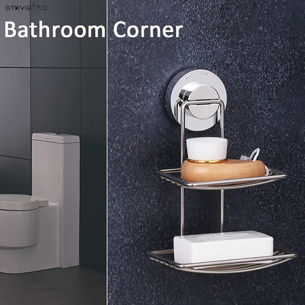 No nails, No drilling, No screws, harmless on your wall, cleanly remove. Fit for kitchen shower bathroom or anywhere you need. The adhesive pad can be worked on ceramic tile, stainless steel, glass, acrylic, mirror, smooth marble, and other smooth surface. The self adhesive will NOT work on Stone, Brick, plastic other rough surface. This soap holder is a 2-layer design. The soap trough has a deep groove. The design of this soap trough can prevent the soap from soaking and stagnant water, help the soap dry quickly and keep the bar soap longer in use, and prevent the soap from moulding and caking. Bar soap holder is made of premium thickened Stainless Steel material. Our suction design is vacuum locking, rotate and lock which can be reusable. It can be used in wet areas such as bathroom and kitchen.