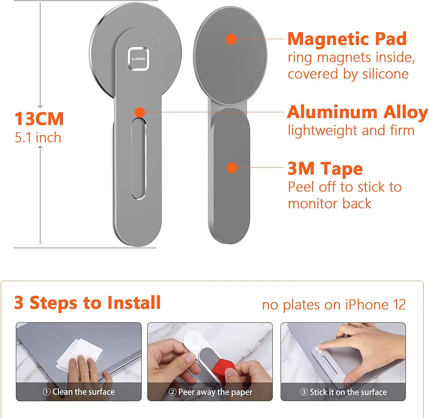 Introducing a versatile laptop side phone holder that offers seamless compatibility with the iPhone 12, iPhone 13 Pro Max, iPhone 13 Pro, and iPhone 13 mini models. This innovative holder eliminates the need for additional plates and provides a hassle-free solution for conveniently mounting your phone.