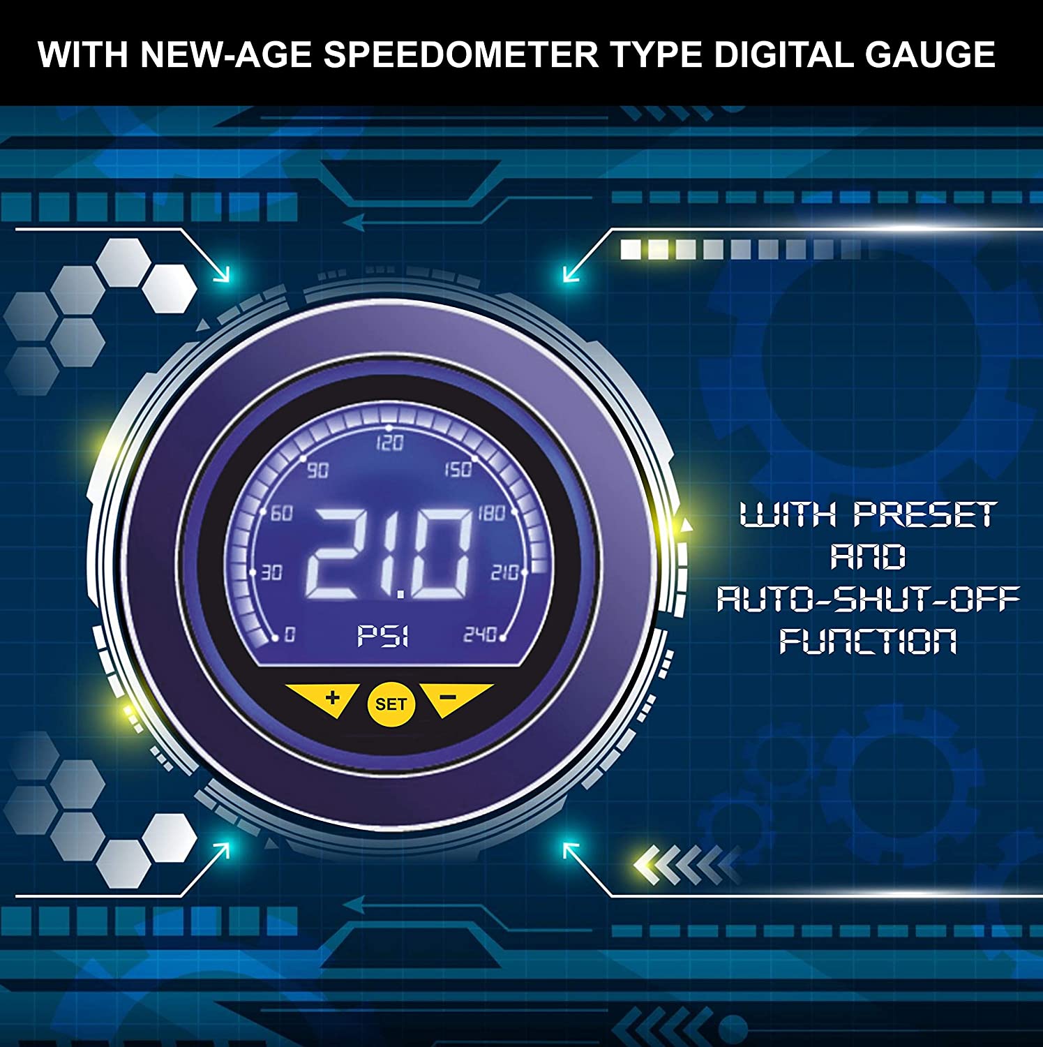 Typhoon Digital Heavy-Duty Metal Tyre Inflator with Auto Cut-Off & LED Light