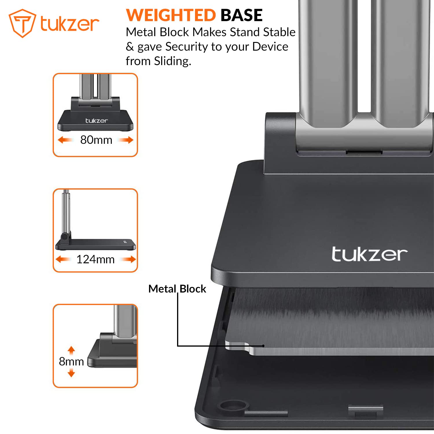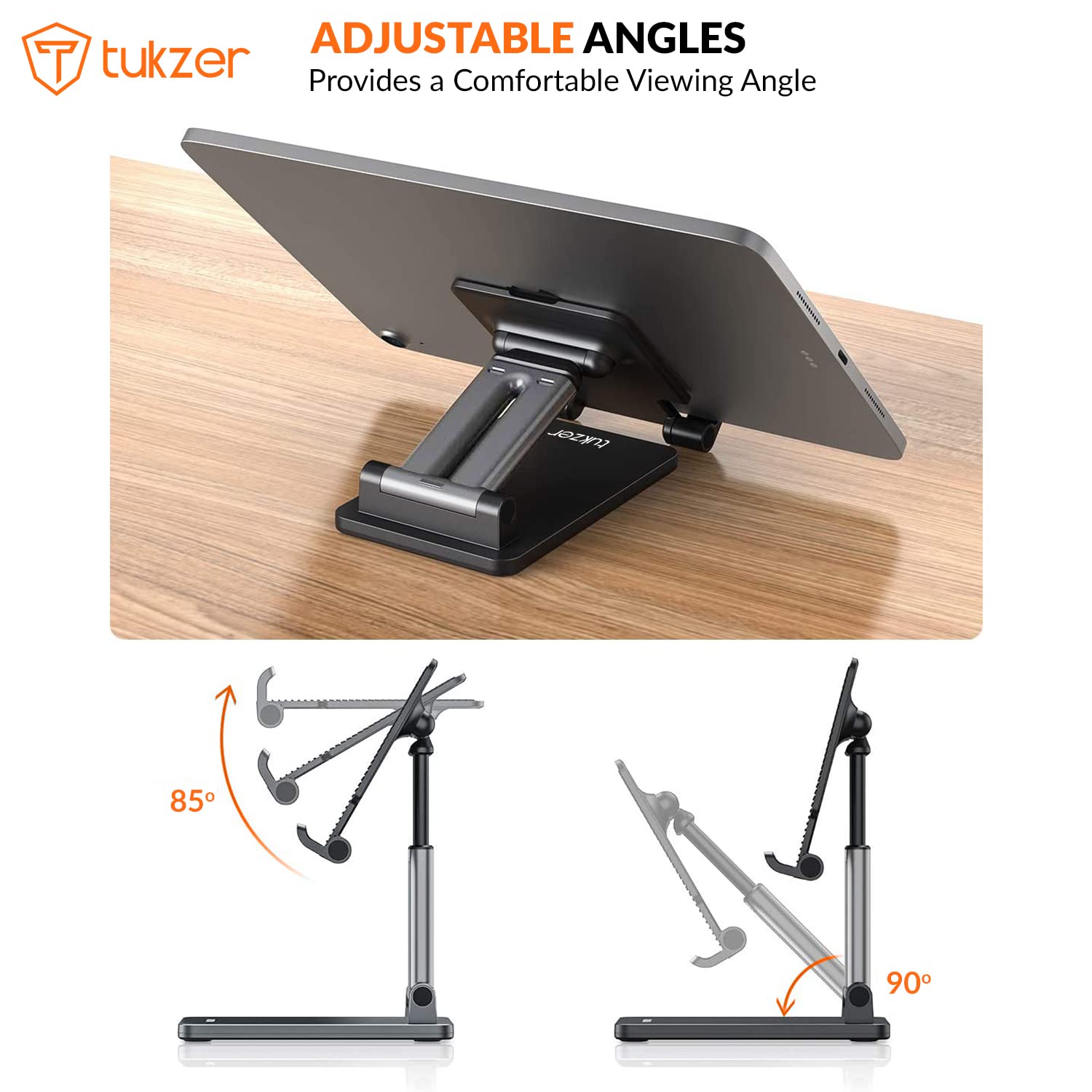Table Stand equipped with Sturdy Dual Poles & Dual Hinges which allows to adjust most Comfortable Viewing Angle and Height. It helps to Save your Back and Neck from Hurting while generally using your device. This tablet stand holder is Collapsible that can be Fully Folded into a Pocket Sizes, Smaller than your Palm. Free-up your hands when doing Face-Time, Skype Calls, Video Conference, Watching YouTube Videos, Movies, Web Surfing, etc. The stand covered with Silicone Pads holds your device firmly in place and prevent from scratches, sliding, falling, and other potential disasters. The rubber feet under the base makes it more stable when you tap the devices. Upgraded with Premium Dual Aluminum Poles and Solid Base with Extra Weight by a Piece of Embedded Metal Block. It provides a more Stable Support without Shaking than the single pole stands. Durable metal body, smooth edge, surface polishing process, this cell phone stand can hold your device steadily. Rubber pads and cushions will protect your device from scratches and sliding. Ergonomic design offers a fabulous viewing when using Face-time and watching films. It’s equally stable with charging port and volume buttons accessible in either landscape or portrait mode while your phone is in the holder, easier to use.